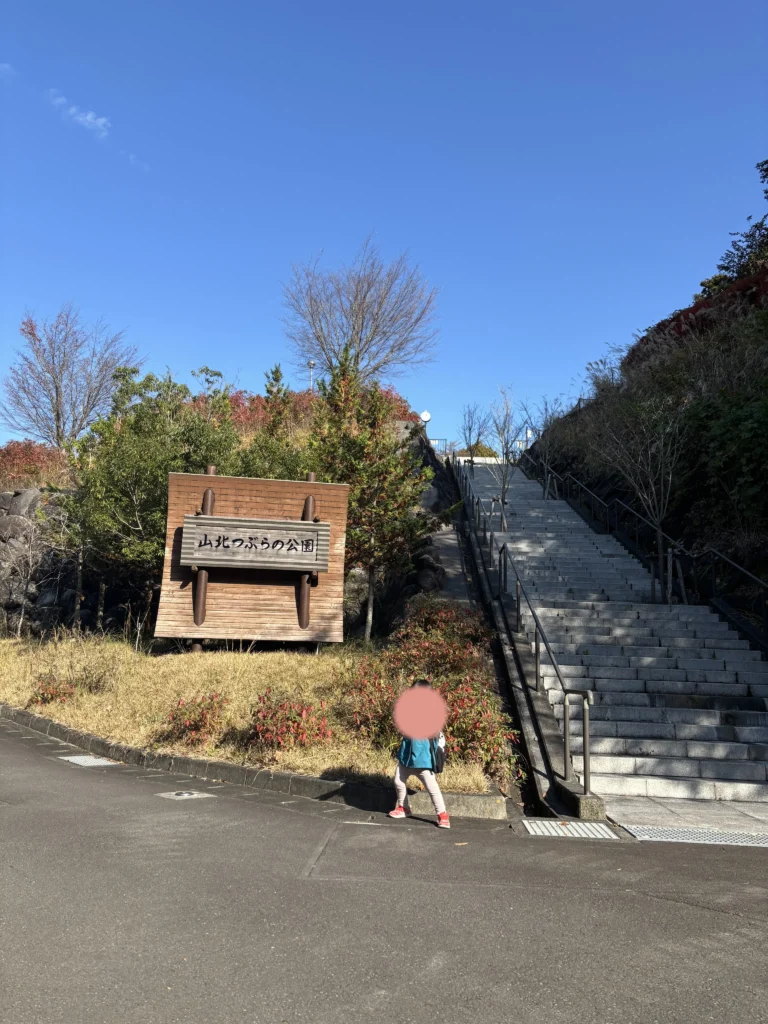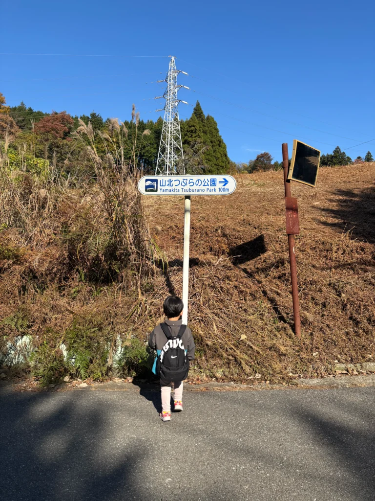 ここでムリに登るのはちょっと違うかも…と思い、先ほど見た登山道入口の「山北つぶらの公園」の看板まで戻る。