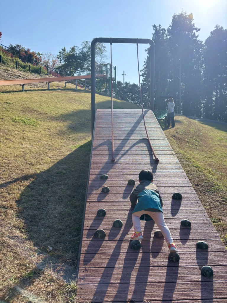 ロング滑り台やアスレチックがあります。